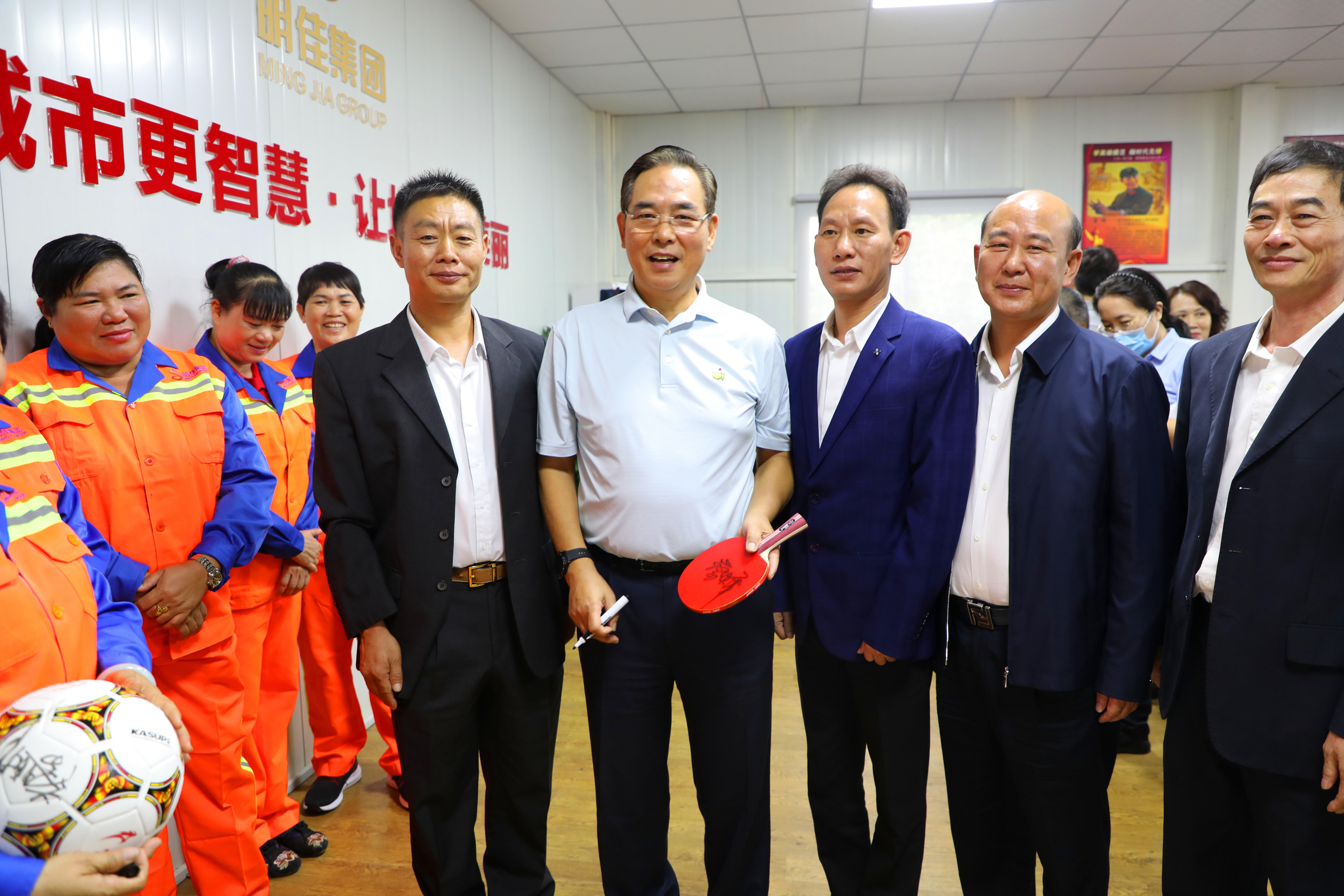 他肯定了明佳集團(tuán)工會取得的成績,并親切慰問了現(xiàn)場的環(huán)衛(wèi)工人,與他們一一握手,并合影留念。