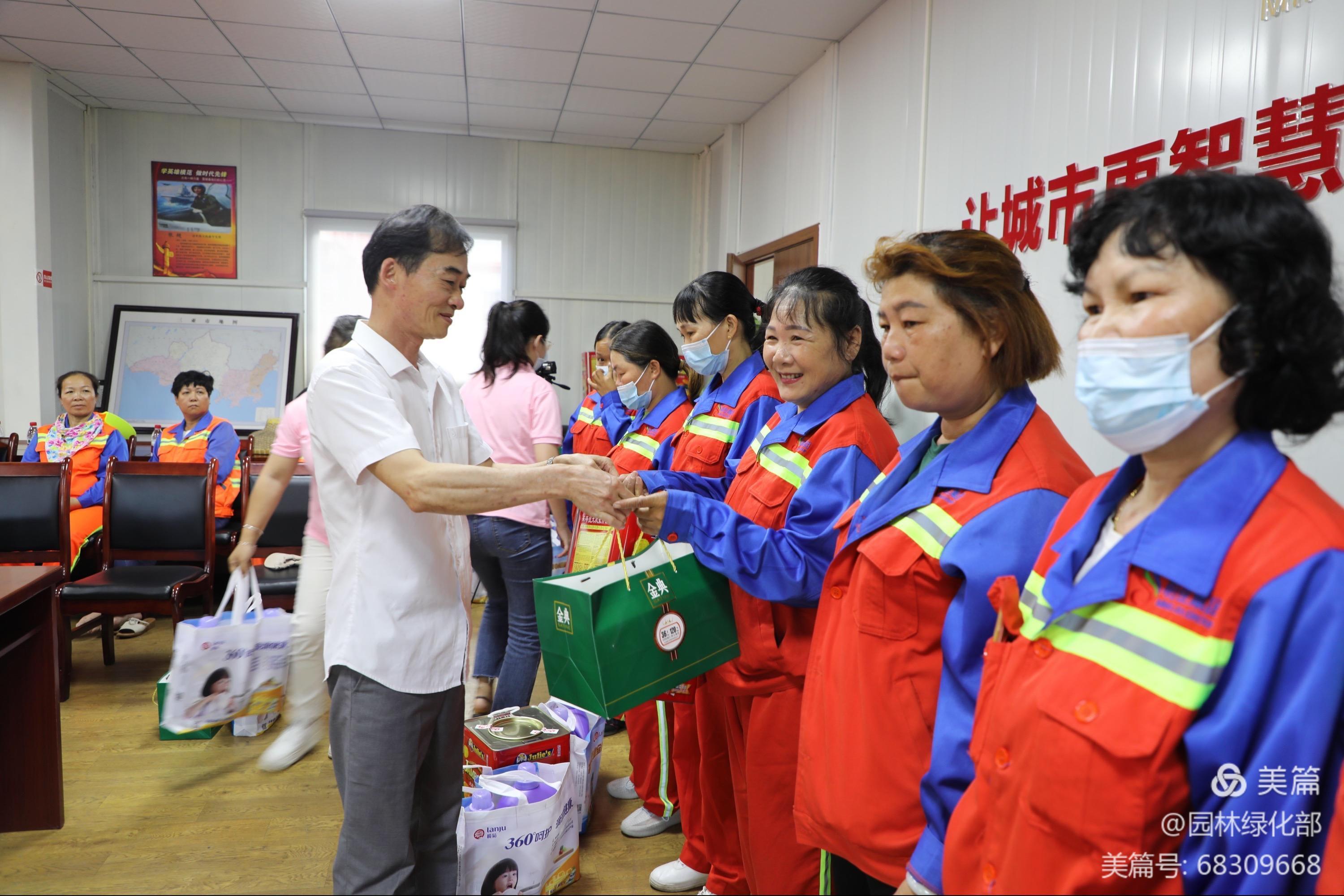 吉陽區(qū)婦聯(lián)蒲愛蓉主席、明佳婦聯(lián)熊牡丹主席及張煒珍副主席同女職工親切交談