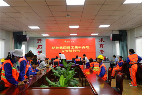 11月14日上年09:00時,明佳集團黨支部組織員工集中辦理光大銀行卡。此次活動由支部宣傳委員陳冬梅負責牽頭,調協光大銀行三亞大東海支行,為集團員工集中辦理光大銀行工資卡共計四佰余張,用實際行動踐行和強化黨員為民服務的初心和使命。