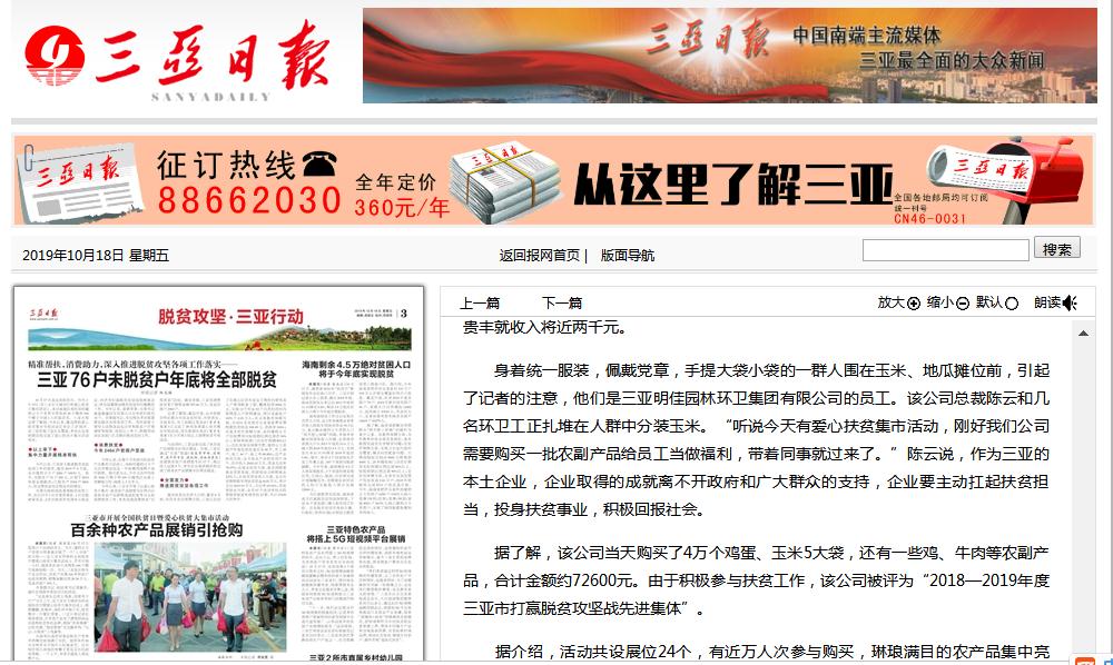 三亞日?qǐng)?bào):三亞市開展全國(guó)扶貧日暨愛心扶貧大集市活動(dòng) 百余種農(nóng)產(chǎn)品展銷引搶購(gòu)