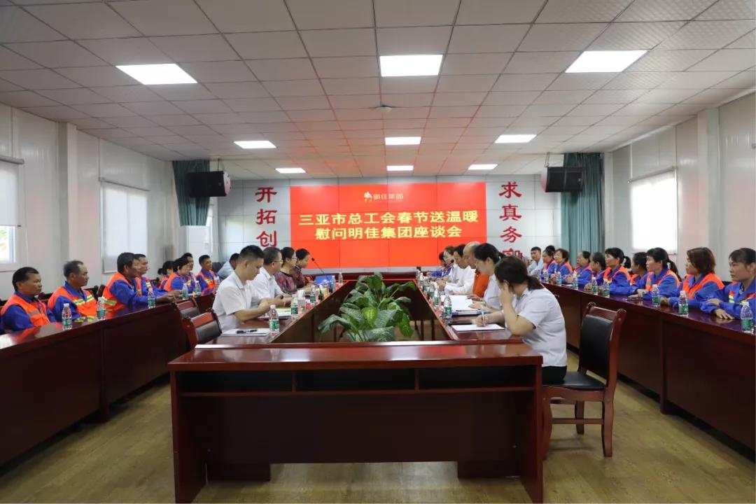 最后,慰問(wèn)團(tuán)一行來(lái)到三亞明佳園林環(huán)衛(wèi)集團(tuán)有限公司召開(kāi)座談會(huì)。會(huì)上,慰問(wèn)團(tuán)展開(kāi)討論了高齡、高風(fēng)險(xiǎn)環(huán)衛(wèi)從業(yè)人員的權(quán)益保障問(wèn)題,并詳細(xì)了解了企業(yè)職工在工作、生活中存在的問(wèn)題,并認(rèn)真聽(tīng)取他們的訴求和建議。